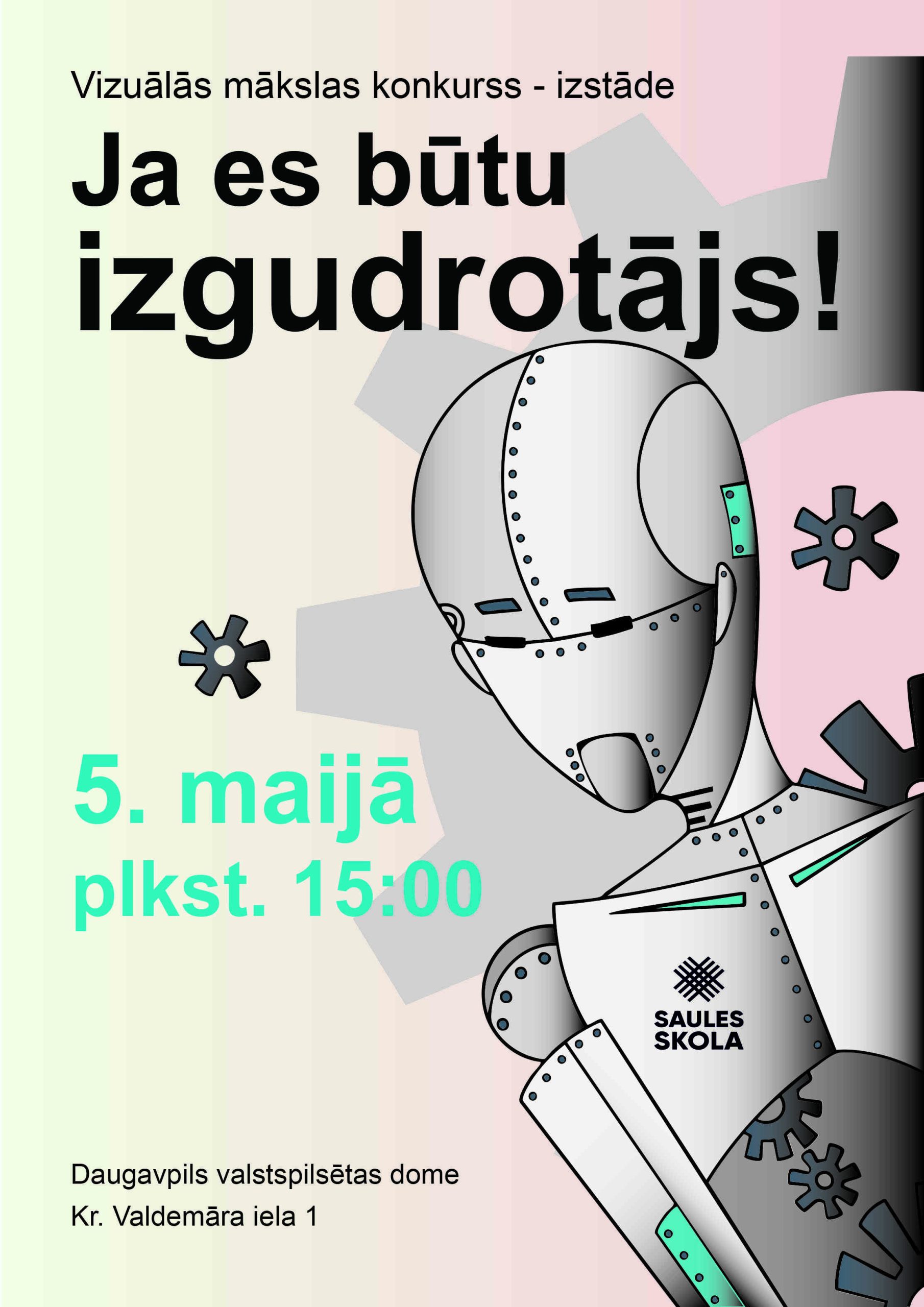 Mākslu izglītības kompetences centrā “Daugavpils Dizaina un mākslas vidusskola Saules skola” ir noslēdzies vizuālās mākslas konkurss “Ja es būtu izgudrotājs!”. Šī gada tēma rosināja bērnus un jauniešus iejusties izgudrotāju lomā, un konkursa rezultāti apliecina, ka iztēlei nav robežu.